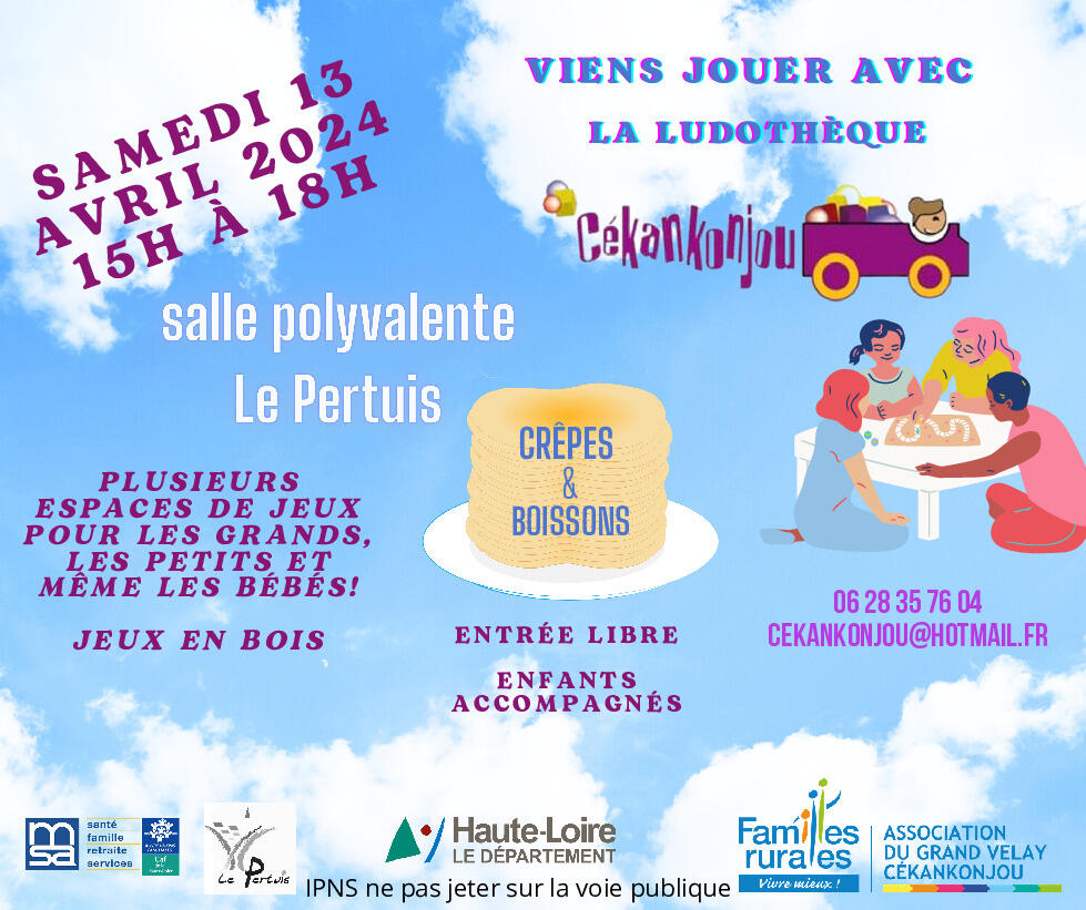 Samedi 13 avril la ludothèque CEKANKONJOU vous accueille à la salle polyvalente du Pertuis de 15h à 18h