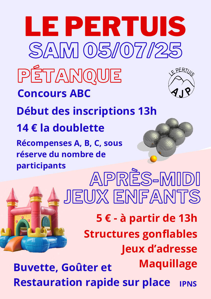 *Concours de pétanque organisé par l'Association des Jeunes du Pertuis
