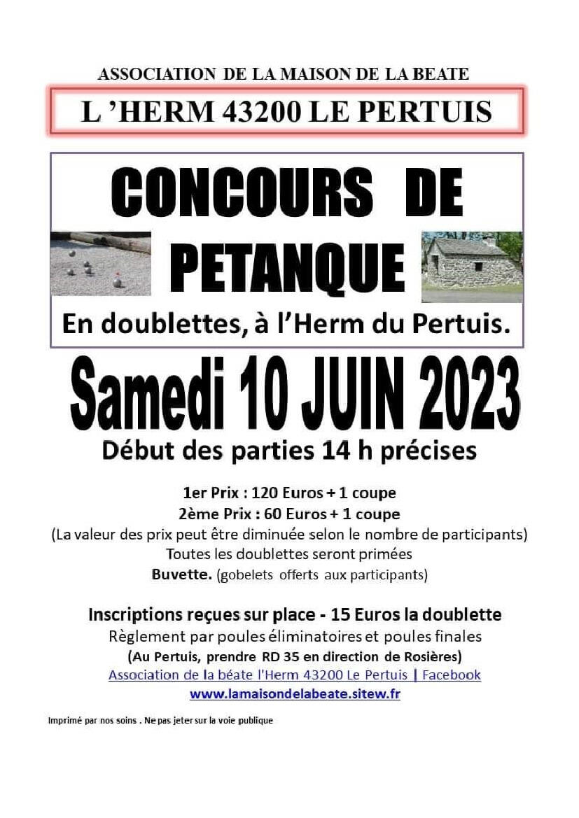 L'association de La Maison de la Béate organise un concours de pétanque ce samedi 10 juin à l'Herm