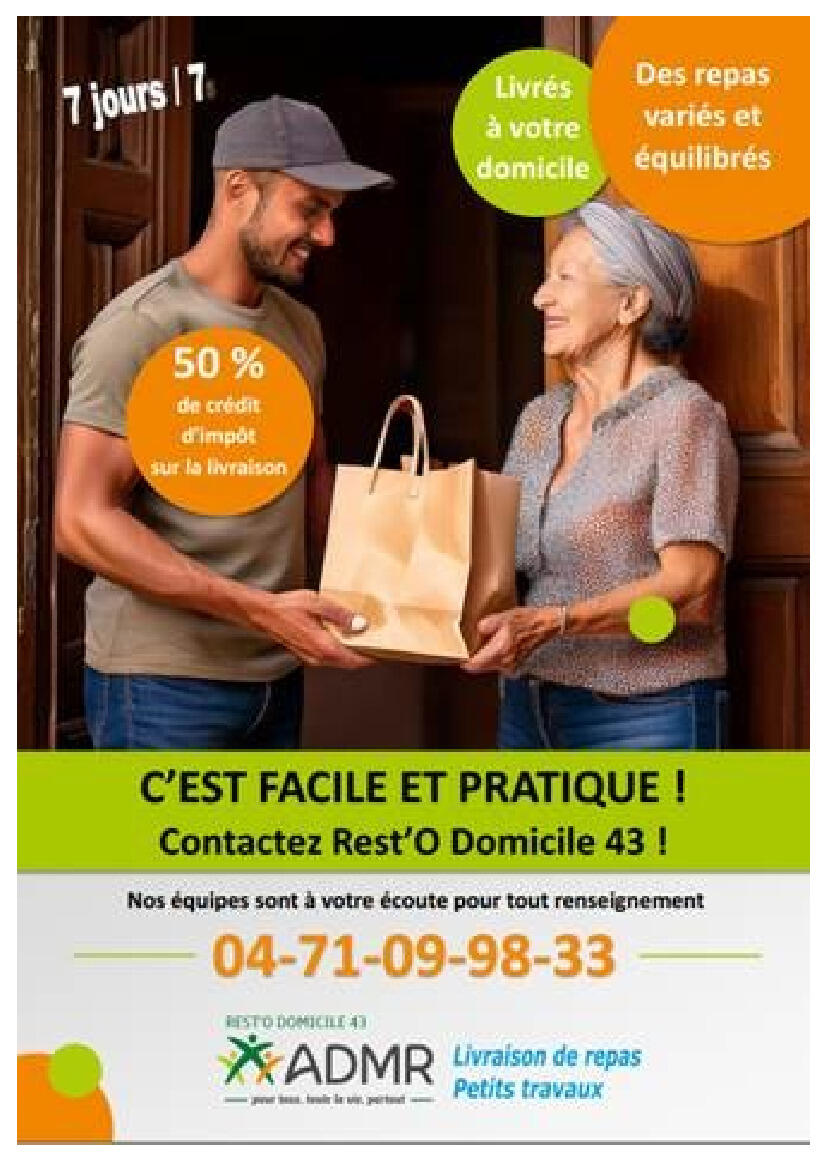 Your town hall / News / Infos portage de repas à domicile - ADMR Rest'O Domicile 43