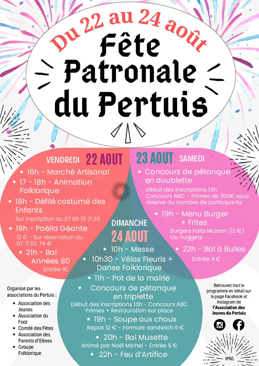 Your town hall / News / 🎉Week-end 22, 23 et 24 aout: vogue du Pertuis🎉