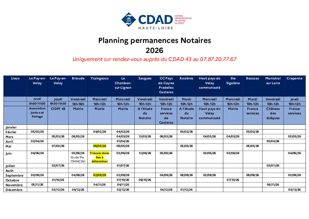 Planning permanences notaires 2026