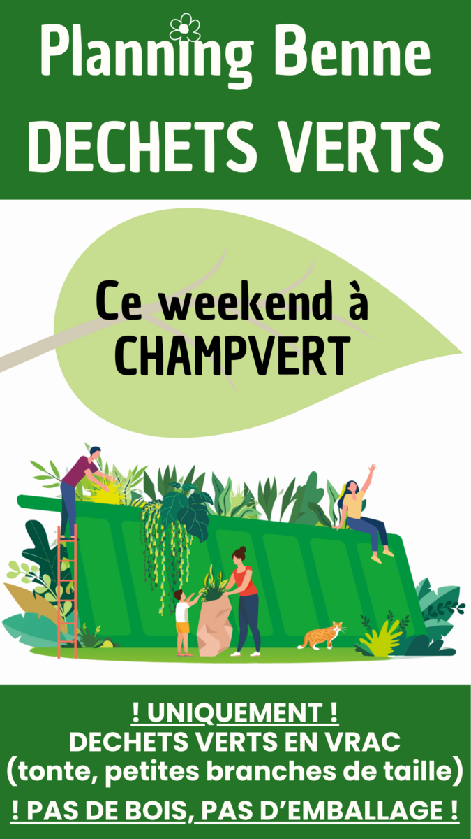 Ce week-end, la benne à déchets verts sera située à  CHAMPVERT