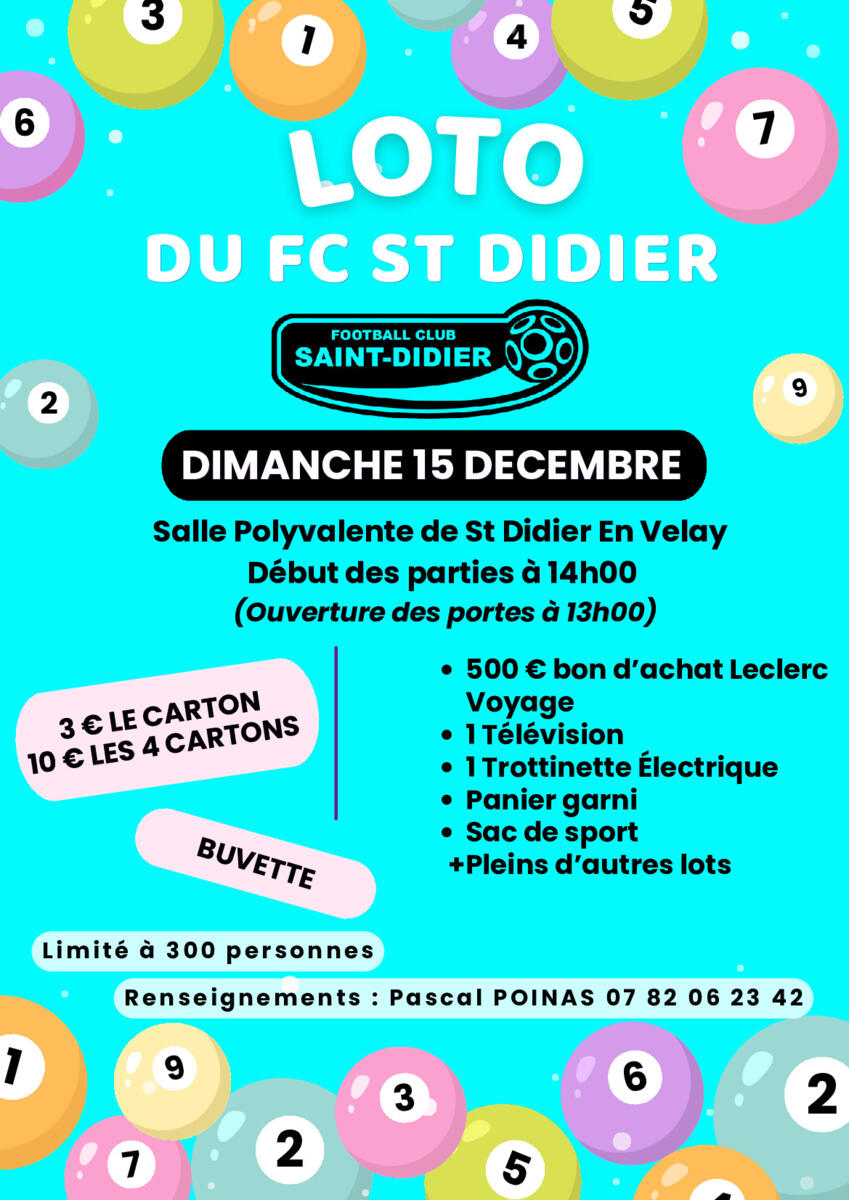 Loto du FC St Didier : le 15 décembre.