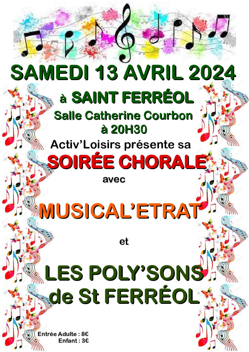 WE ARTISTIQUE 13/14 AVRIL 2024 Salle C.Courbon ST FERREOL 3/27/24 WE ARTISTIQUE 13 ET 14. AVRIL 2024 CONCERT ANIME CARUDA 14h CHORALE 20H30 THEATRE. 15H