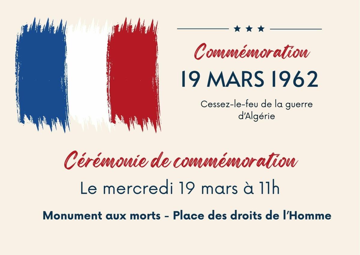 La commémoration se déroulera mercredi 19 mars 2025 à 11h devant le monument aux mort situé place des droits de l'Homme.