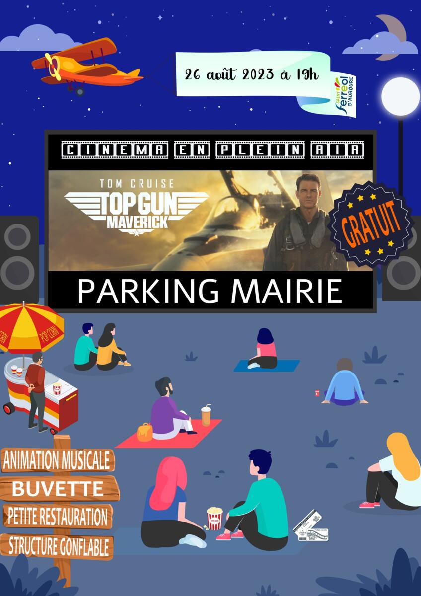 📽Rendez-vous dès 19h, sur le parking de la mairie pour profiter des animations prévues par la ville de Saint-Ferréol-D'Auroure en partenariat avec l'APE (animation musicale, jeux, structure gonflable, buvette, petite restauration). Vous pourrez par la suite profiter du ciel étoilé pour partager tous ensemble la soirée cinéma devant le film "Top Gun Maverick"🎥