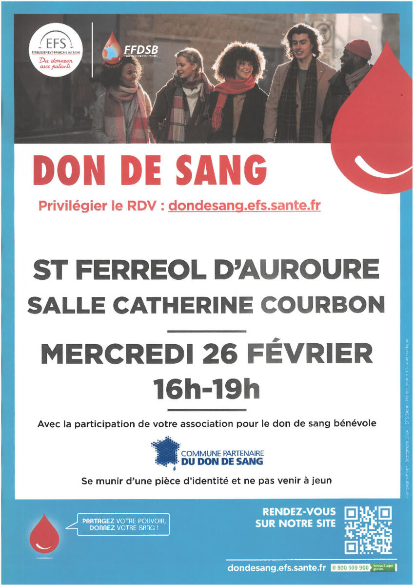 🩸 La prochaine collecte de sang se déroulera Mercredi 26 février, de 16H00 à 19H00