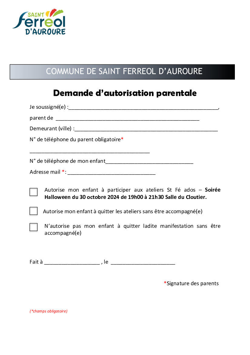 Si tu souhaites participer, retourne par mail l'autorisation parentale, ci-jointe, complétée et signée à l'adresse suivante: elus.sfa@orange.fr