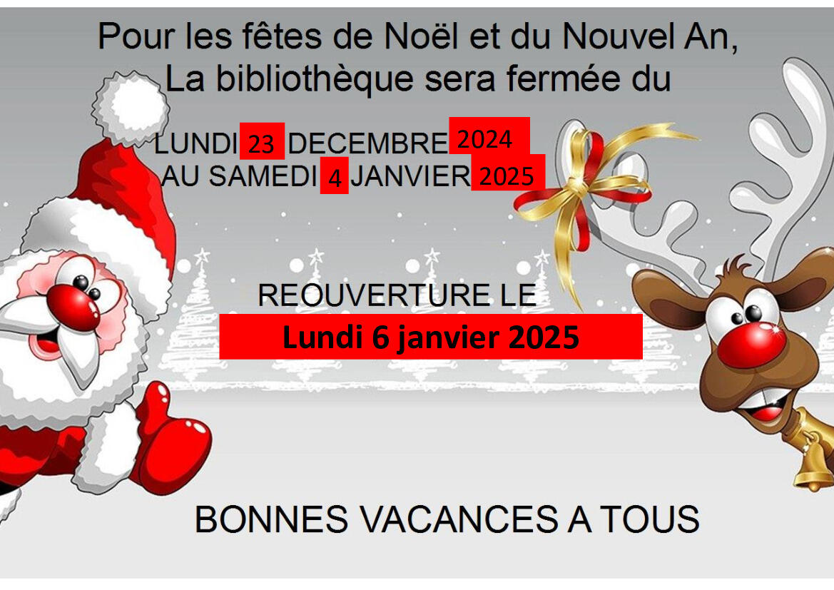 Nos bénévoles prennent des congés 😎 : la bibliothèque sera fermée pendant les fêtes de fin d’année, du 23 décembre au 4 janvier.