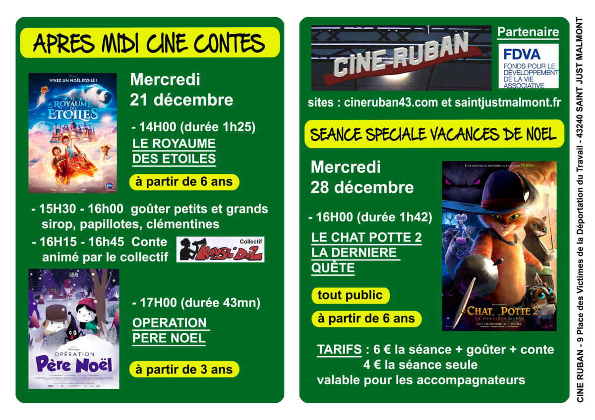 Ciné Ruban propose un après-midi Ciné Contes le mercredi 21 décembre, à partir de 14H00.