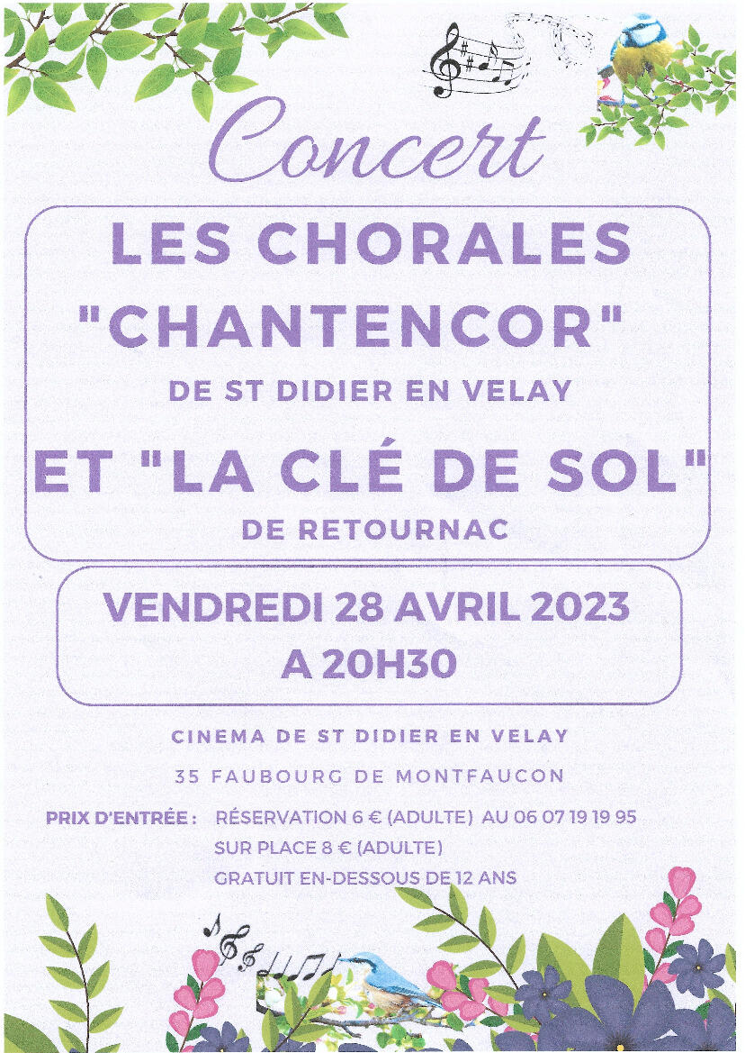"Chantencor" de Saint Didier en Velay et "La Clé de Sol" de Retournac organisent un Concert de Chorales