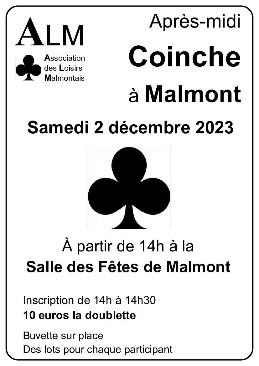 L'Association des Loisirs Malmontais organise un après-midi Coinche le