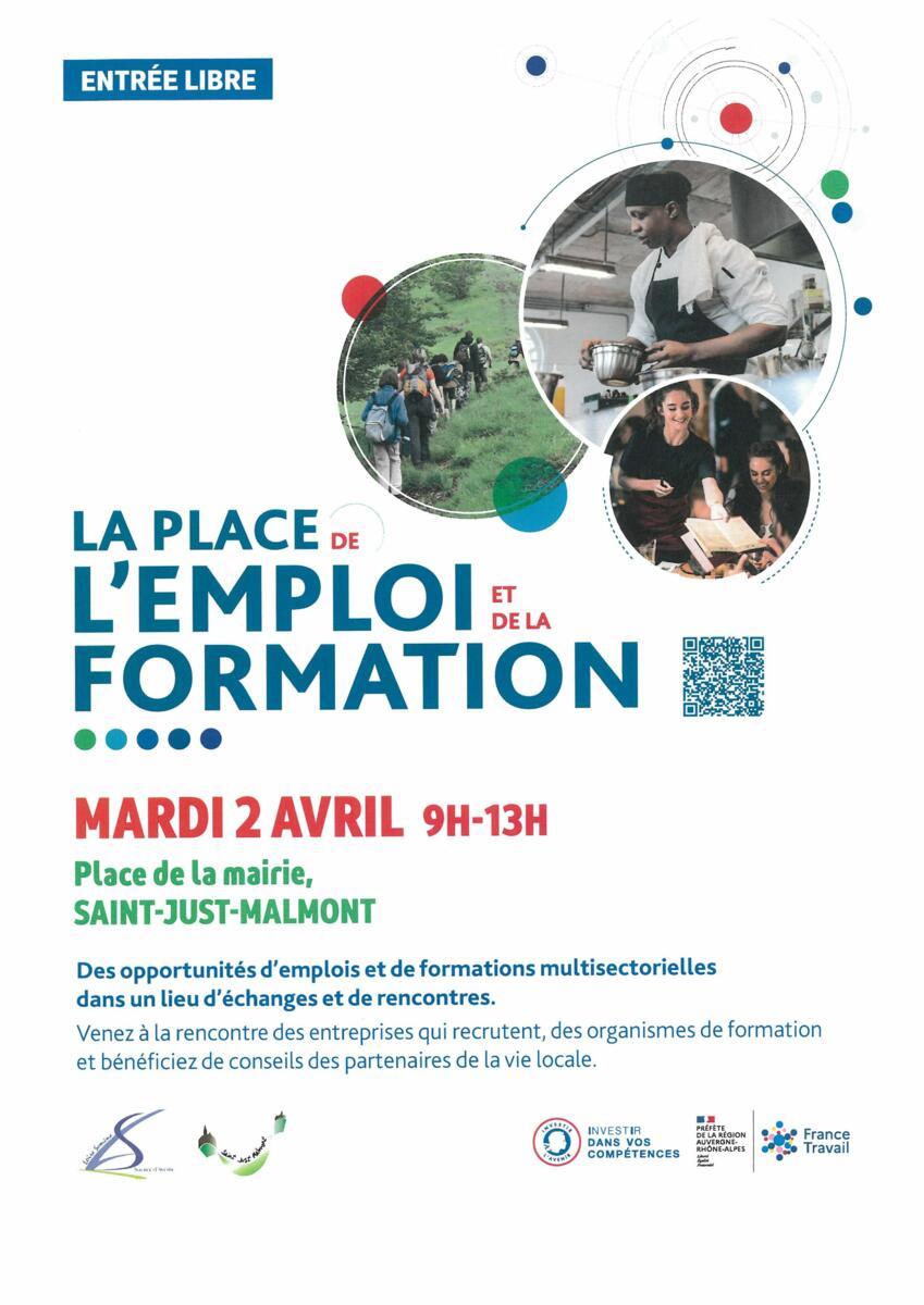 FRANCE TRAVAIL, en collaboration avec la Communauté de Communes Loire-Semène et la Commune de Saint Just Malmont, organise l'évènement "Place de l'Emploi et de la Formation"