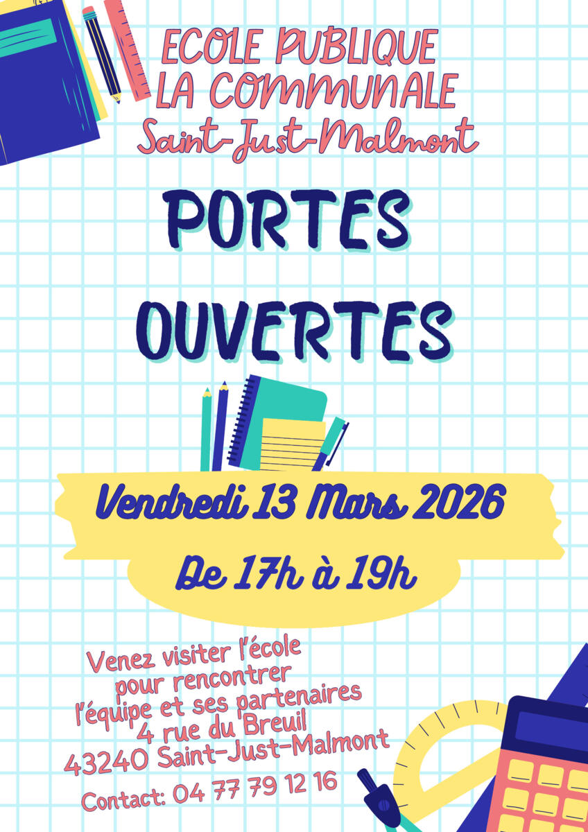 Les portes ouvertes qui auront lieu le vendredi 13 mars 2026, de 17h00 à 19h00, pour visiter l’établissement, rencontrer les enseignants et procéder aux inscriptions pour la rentrée 2026-2027, notamment pour les plus jeunes.