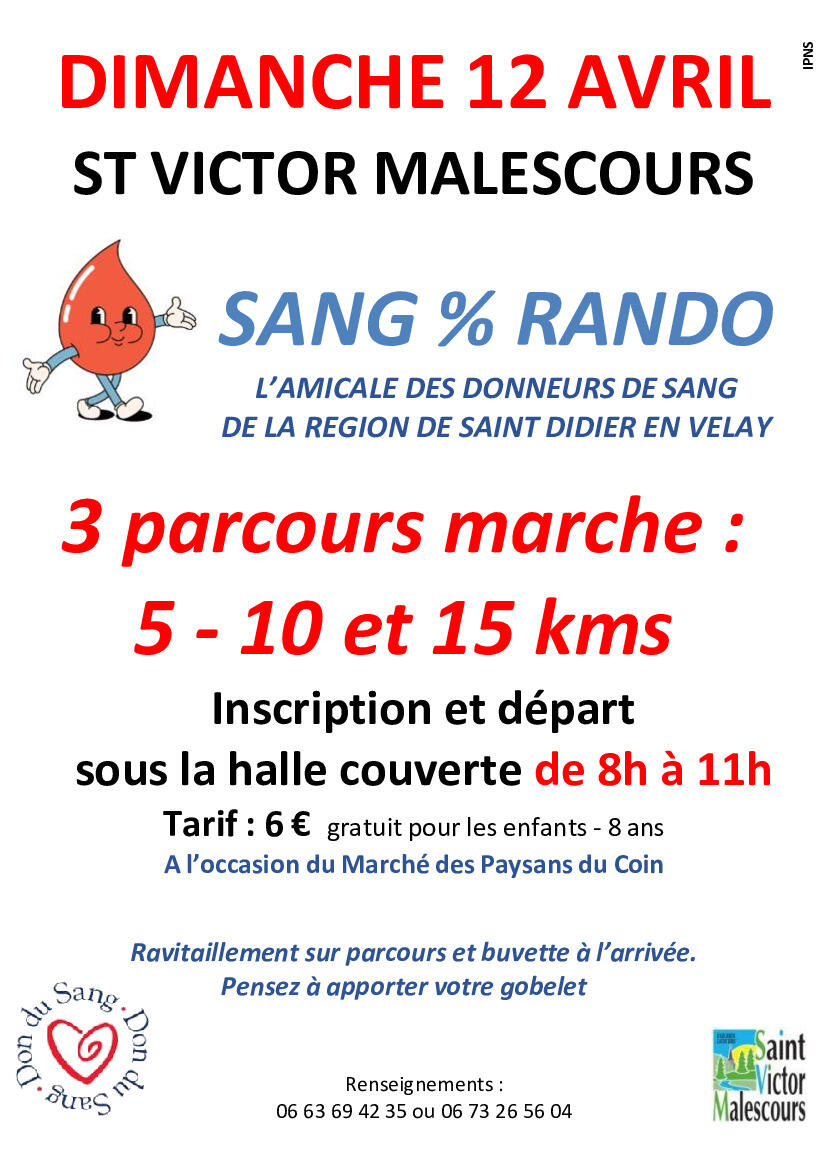 L'Amicale des Donneurs de Sang de la Région de Saint Didier en Velay organise une randonnée "Sang % Rando"