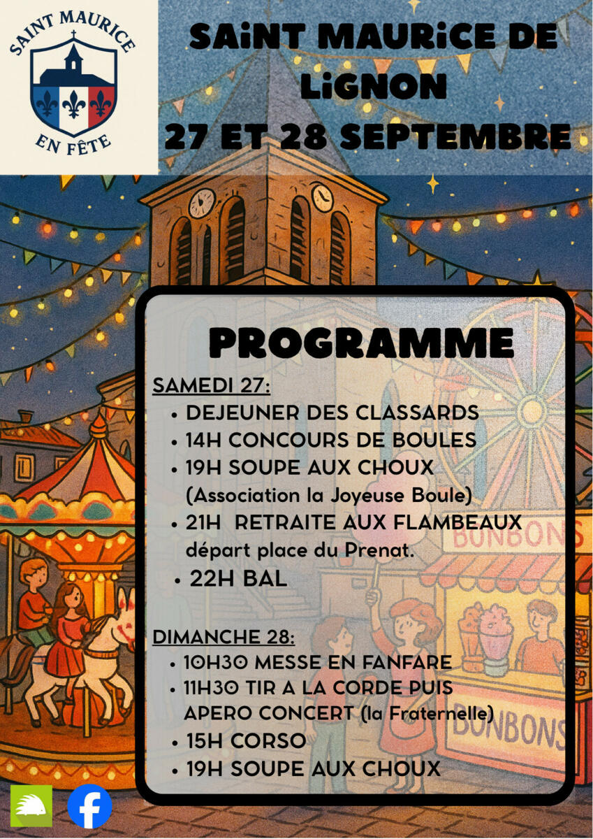 Programme Fête patronale 9/23/25 Le week-end s'annonce festif avec le programme de St Maurice en Fête Venez profiter de toutes les activités