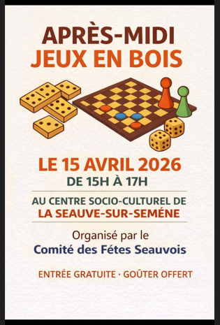 📌 COMITE DES FETES - APRES-MIDI JEUX EN BOIS 4/11/26 COMITE DES FETES - APRES-MIDI JEUX EN BOIS Le 15 AVRIL 2026Â