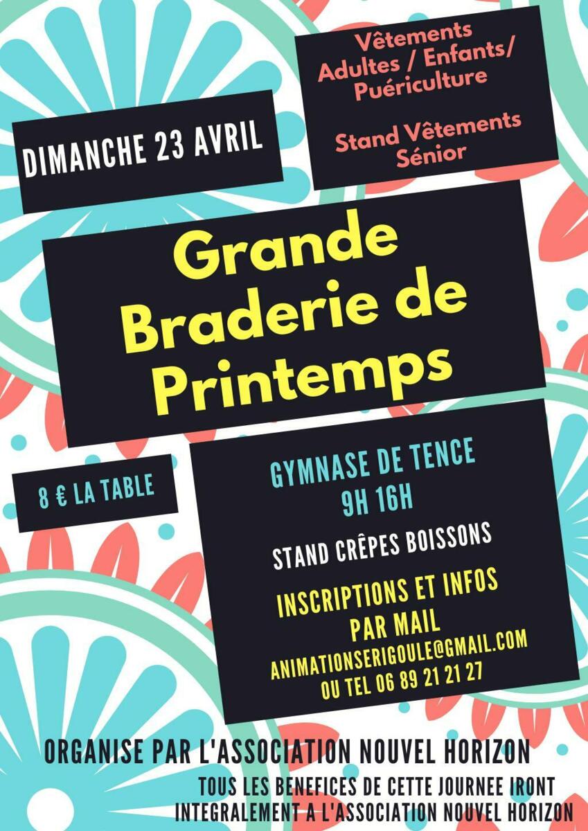 Dimanche 23 Avril au gymnase de Tence, une grande braderie est organisée par l'Association Nouvel Horizon.