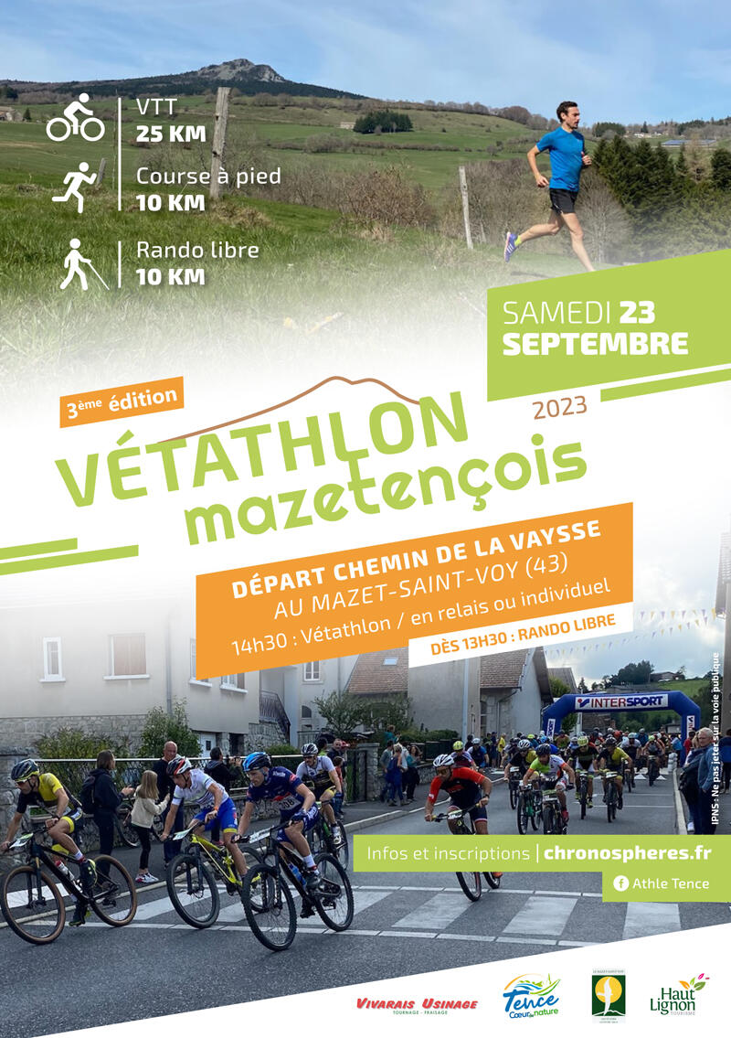 Vous pouvez désormais vous inscrire pour la 3ème édition du Vetathlon Mazetençois qui aura lieu le samedi 23 septembre prochain au Mazet St Voy
