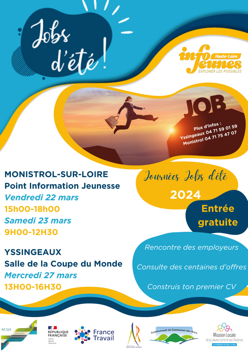 Le forum "Jobs d'été 2024" aura lieu mercredi 27 mars, de 13 h à 16 h 30, à la salle de la Coupe du Monde à Yssingeaux.