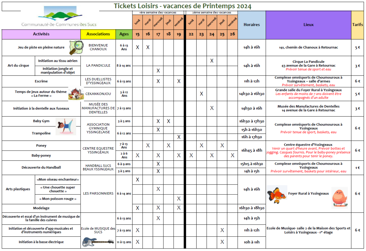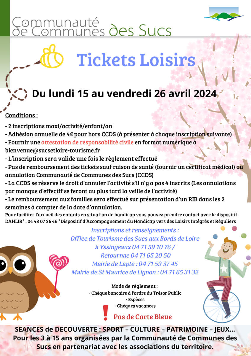 Your town hall / News / [INFORMATION PIJ DES SUCS : TICKETS LOISIRS PRINTEMPS 2024]