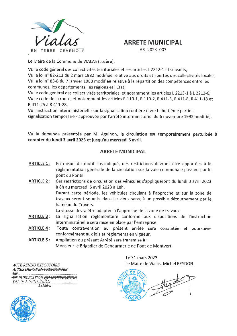 La route pourra être coupée entre lundi 3 avril et mercredi 5 avril au niveau du Pontil pour les travaux de réfection du bitume.