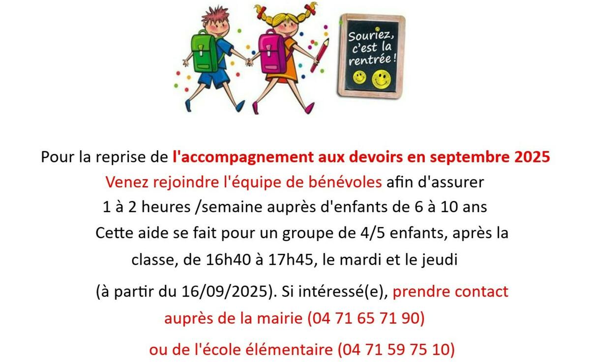 Aide aux devoirs rentrée 2025