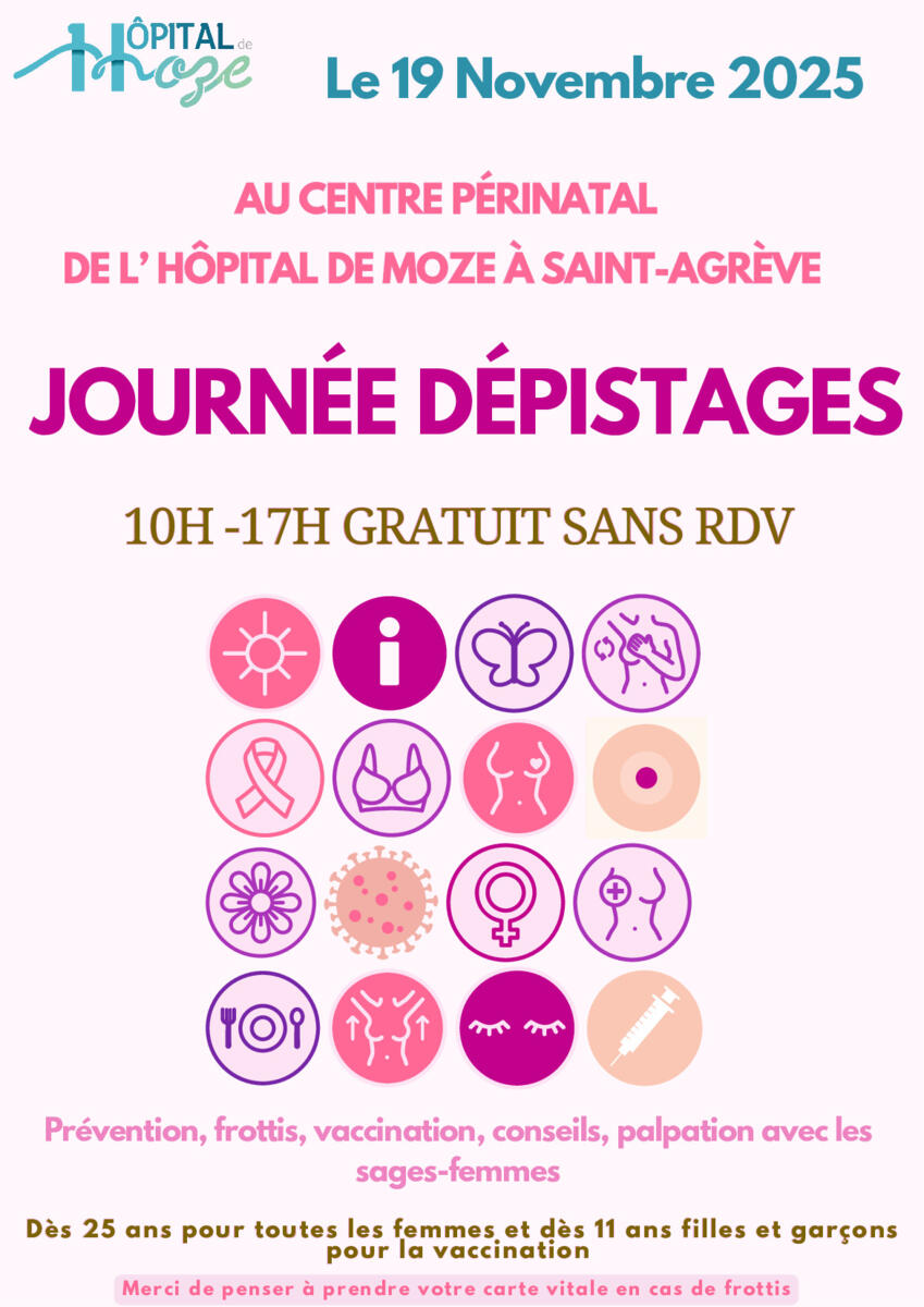 l’Hôpital de Saint-Agrève organise le mercredi 19 novembre 2025, de 10h à 17h, une journée dédiée à la prévention des cancers féminins, au sein du Centre Périnatal de Proximité – Hôpital de Saint-Agrève.