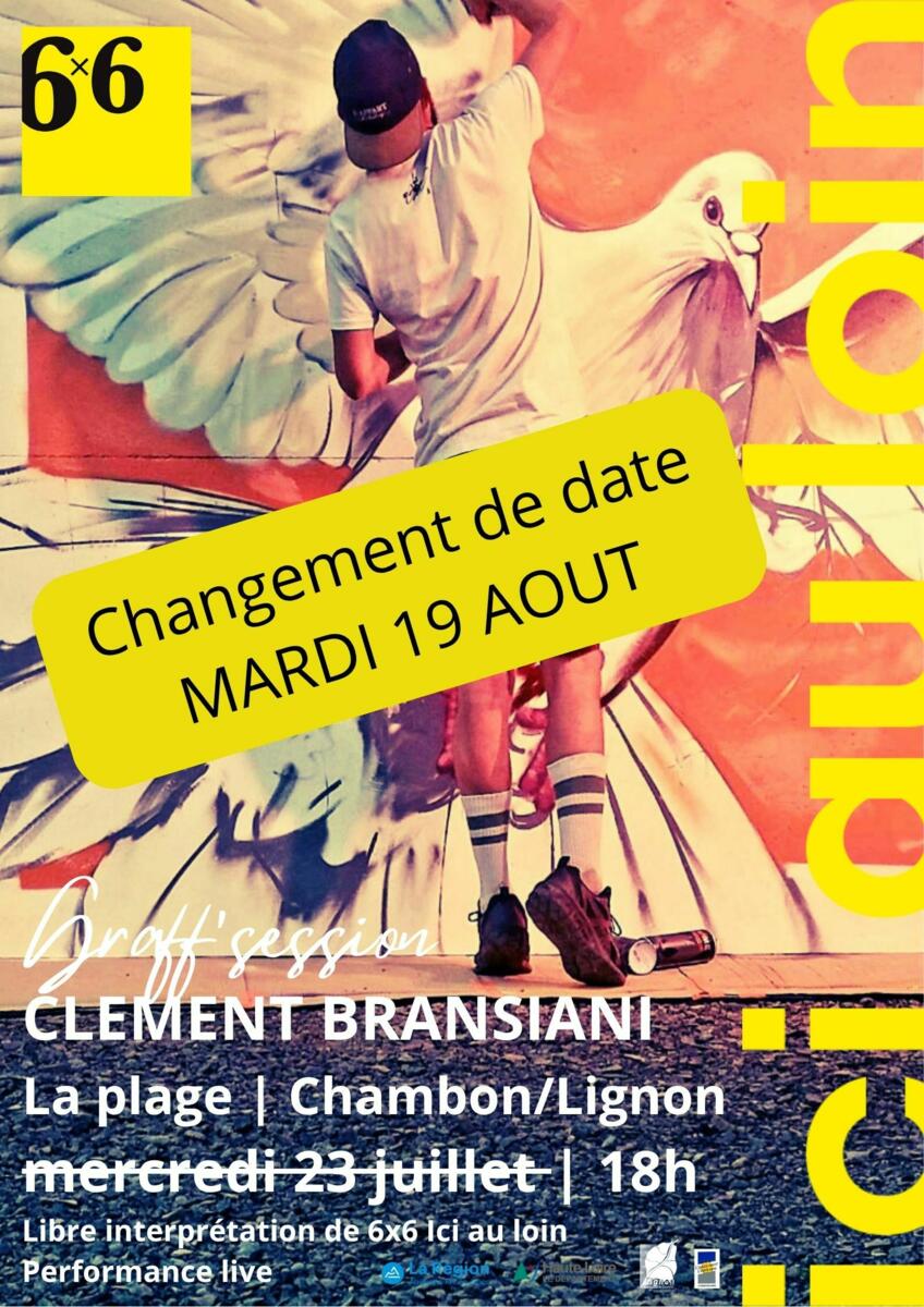En raison des prévisions d'orages et de précipitations, nous avons trouvé plus sage de reporter la session live de graff programmée initialement mercredi 23 juillet à 18h à la plage du Chambon, dans le cadre de 6x6 Ici au loin.