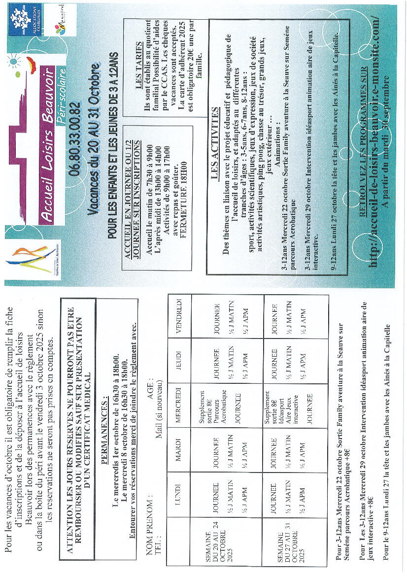 Home / News / 🎃 VACANCES D'AUTOMNE : Programmes des centres