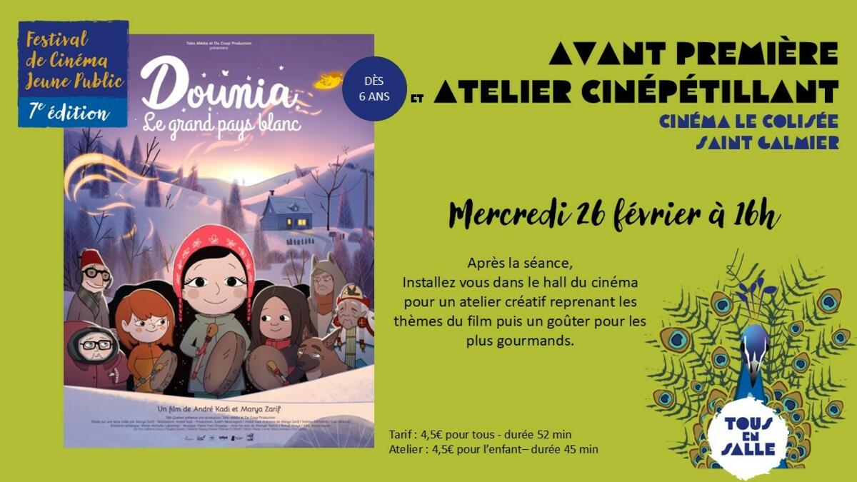 😍❤FESTIVAL TOUS EN SALLE ❤😍 Avant-Première ❄DOUNIA, LE GRAND PAYS BLANC❄ Le MERCREDI 26 FEVRIER à 16H suivi d'un atelier ciné-pétillant.