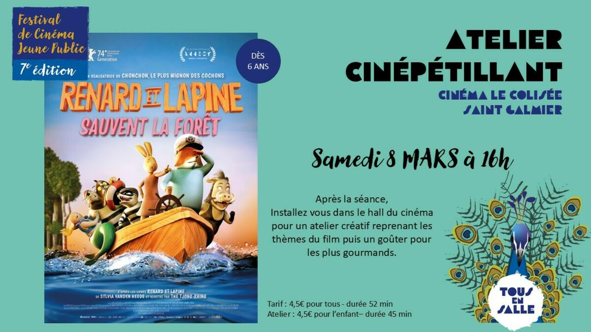😻💕FESTIVAL TOUS EN SALLE💕😻 SAMEDI 8 MARS à 16h 🐰RENARD ET LAPINE SAUVENT LA FORET 🐰 suivi d'un ATELIER CINE-PETILLANT.