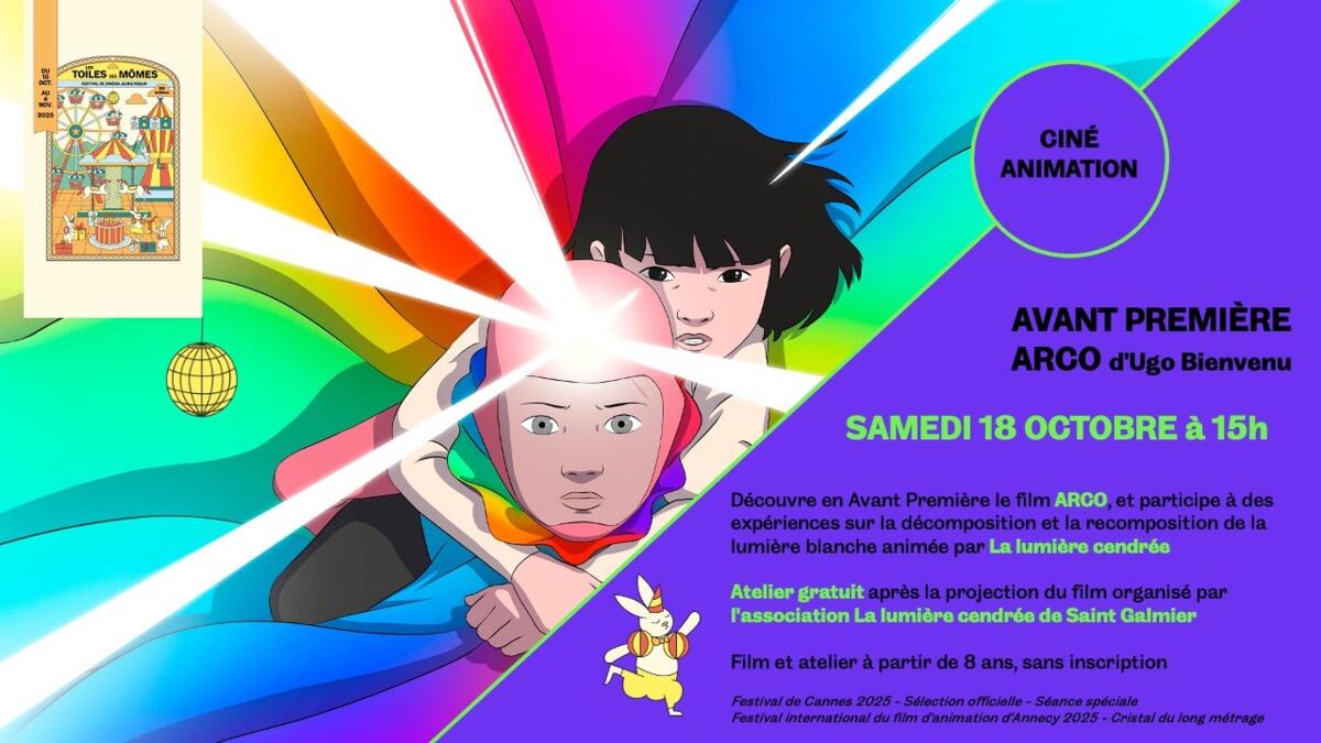Découvre en Avant Première le film ARCO, puis participe à des expériences sur la décomposition et la recomposition de la lumière blanche animée par La lumière cendrée de Saint Galmier.