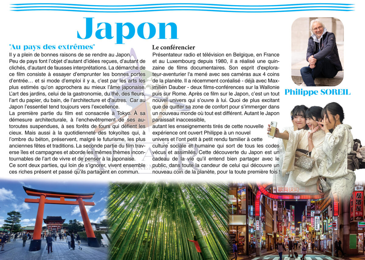 Avec les conférences Altaïr, Dimanche 19 Octobre à 14h30 🗺 partez avec Philippe Soreil découvrir le JAPON.