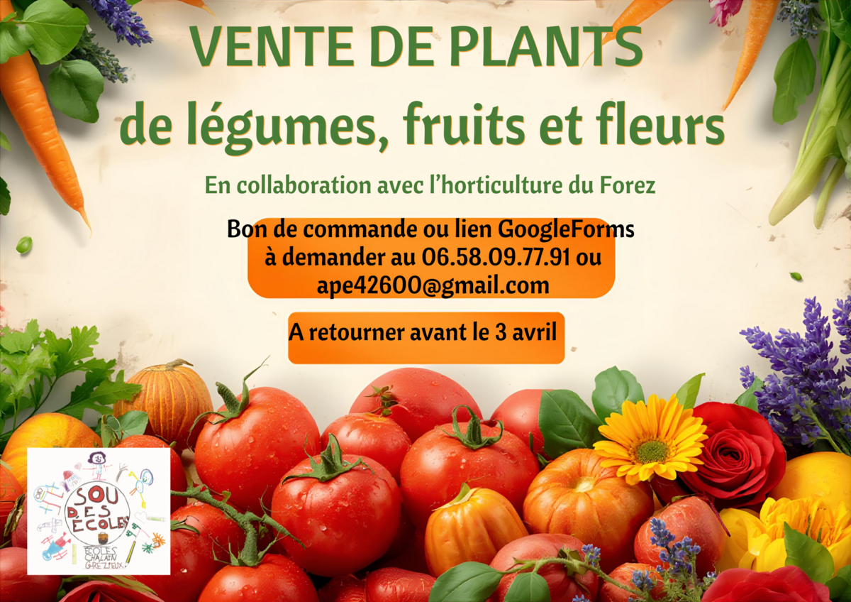 Le SOU des écoles vous propose une vente de plants de légumes, fruits et fleurs.