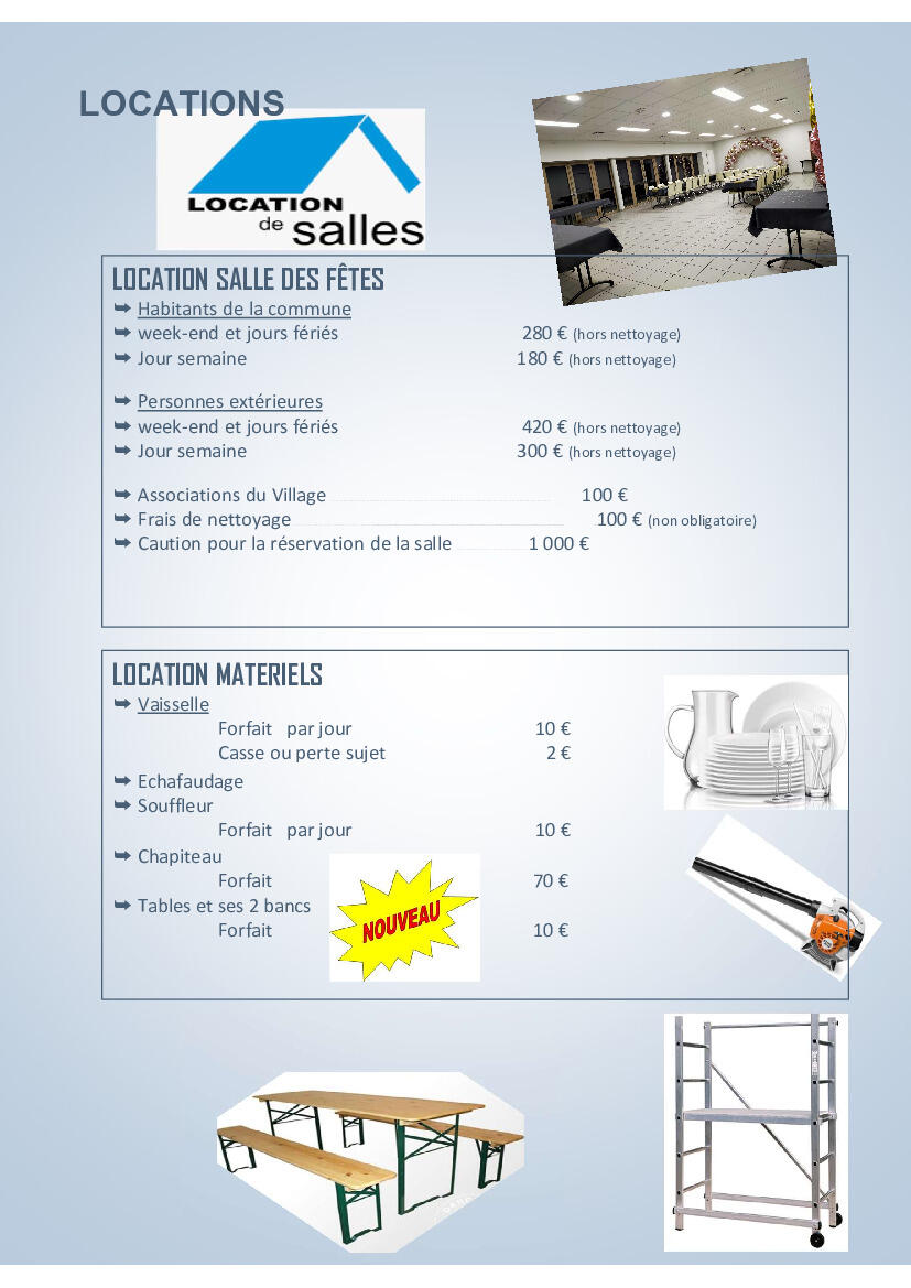 Su ayuntamiento / Servicios / LOCATION SALLE DES FETES ET MATERIELS COMMUNAL