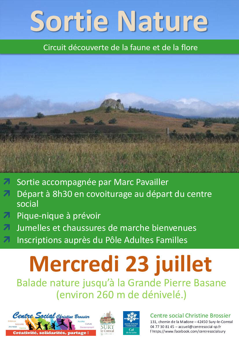 Le mercredi 23 juillet,  le centre social vous propose une Balade nature sur les hauteurs du Forez, animée par Marc Pavailler.