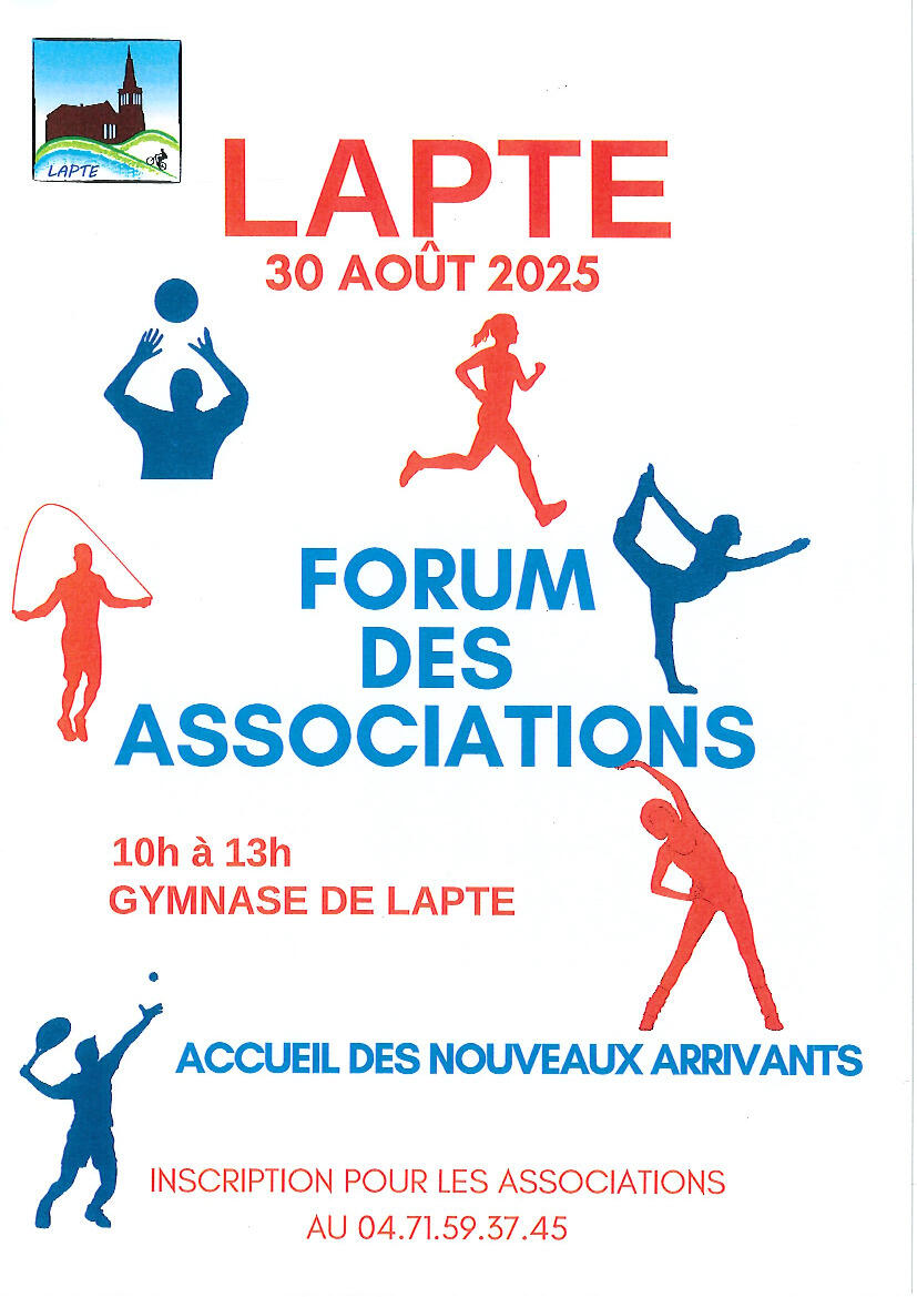 FORUM DES ASSOCIATIONS 🎾🏀🏈 26/8/25 FORUM DES ASSOCIATIONS 🎾🏀🏈 📆 SAMEDI 30 AOÛT De 10h à 13h 📍 Gymnase de Lapte Accueil des nouveaux arrivants 🤝 Source : Mairie de Lapte