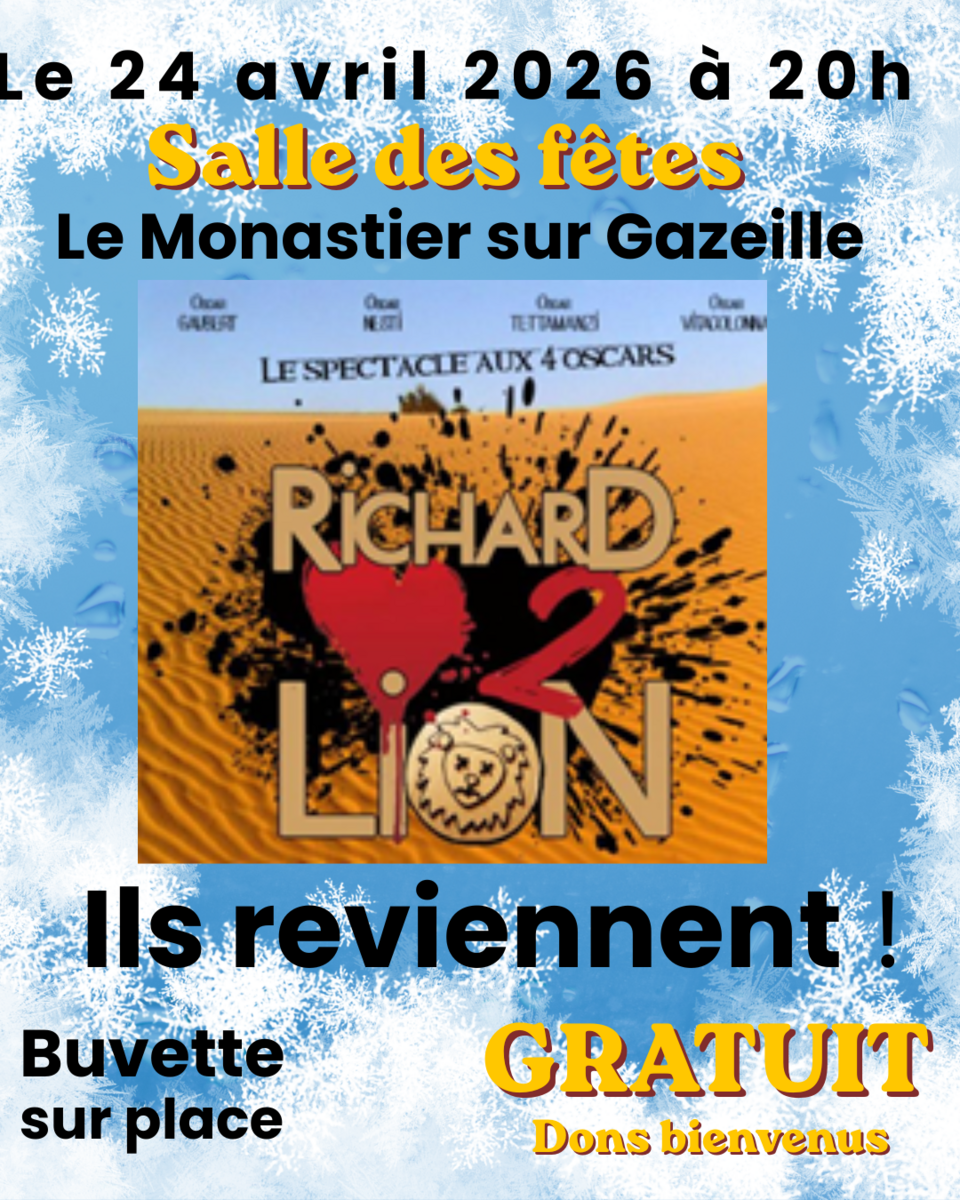 Après l'interruption météorologique de son spectacle l'été dernier, la Compagnie Les Pies revient à la salle des fêtes du Monastier pour vous présenter l'intégralité (promis!) de sa comédie musicale historique décalée. C'est vendredi 24 avril à 20h00. Buvette sur place.