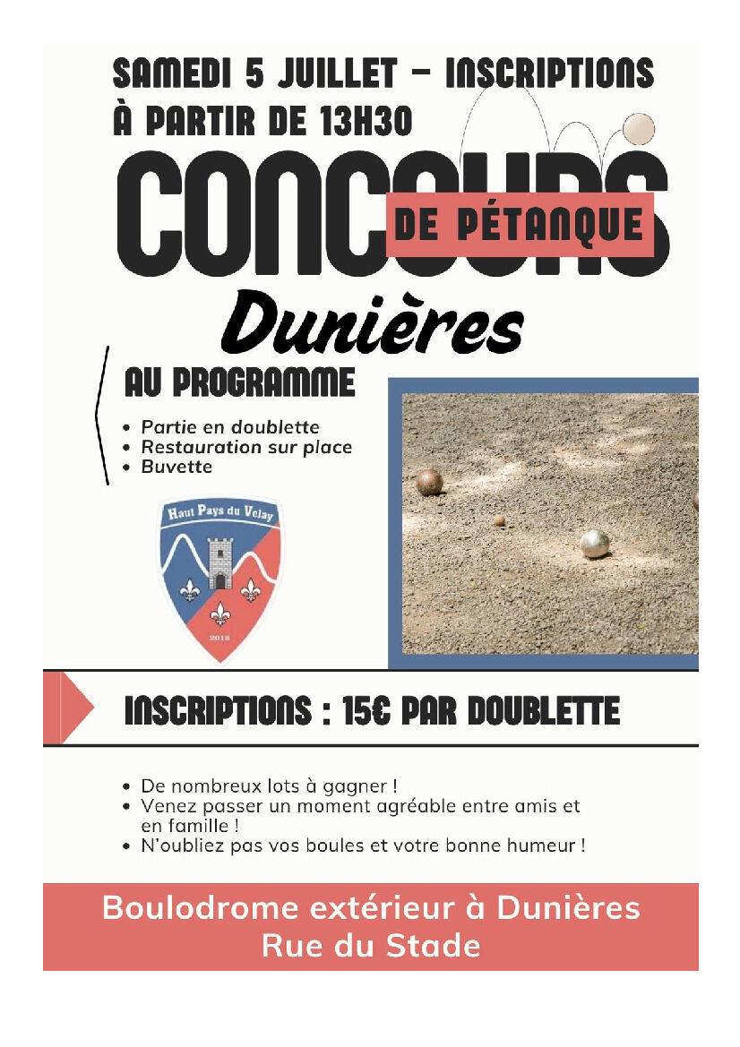 Su ayuntamiento / Noticias / Concours de pétanque à Dunières le 05 juillet 2025