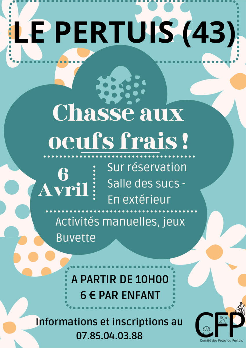 Le comité des fêtes du Pertuis organise sa traditionnelle chasse aux œufs frais le lundi de Pâques (6 avril)