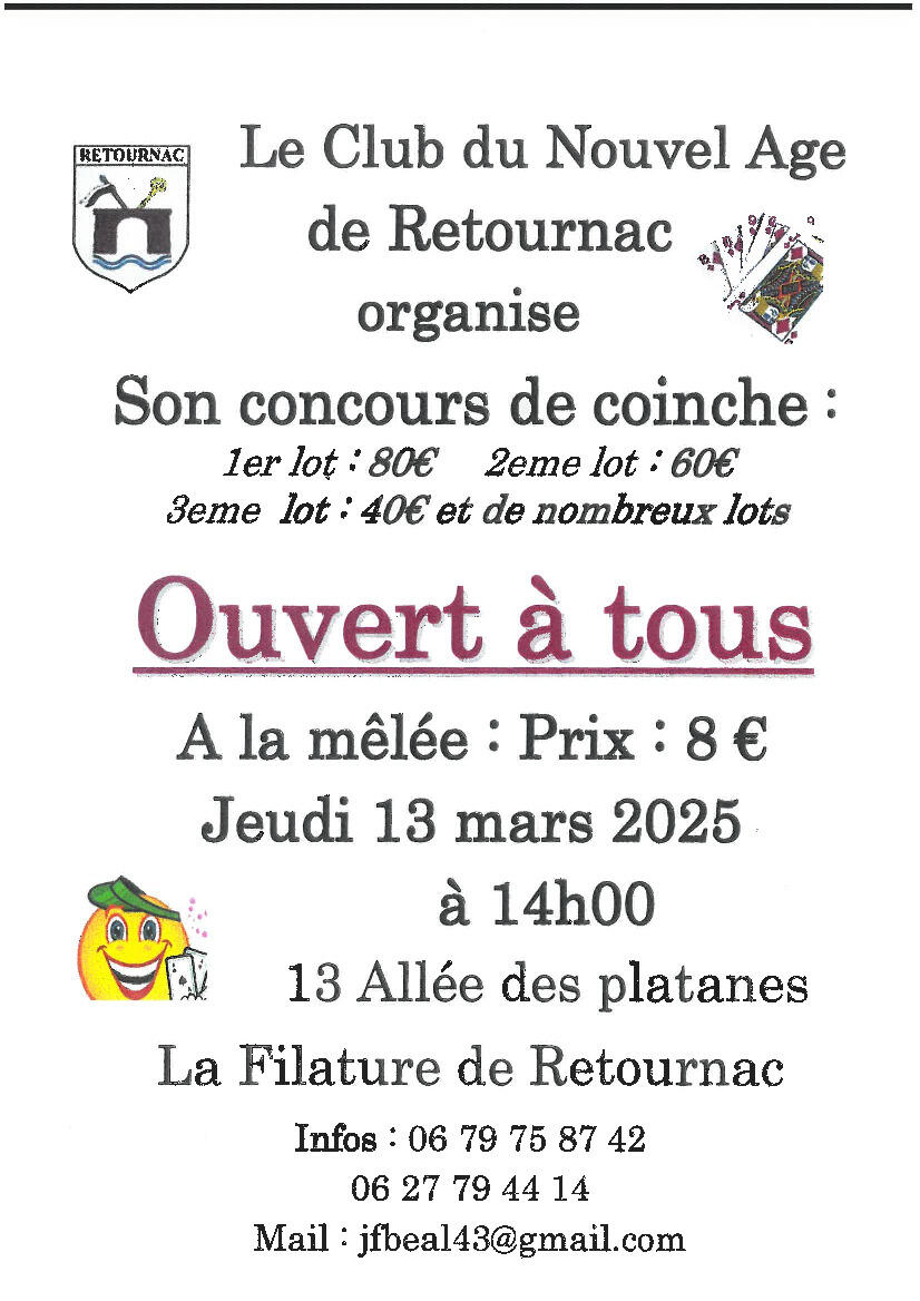 [ Agenda]: CONCOURS DE COINCHE DU CLUB DU NOUVEL AGE