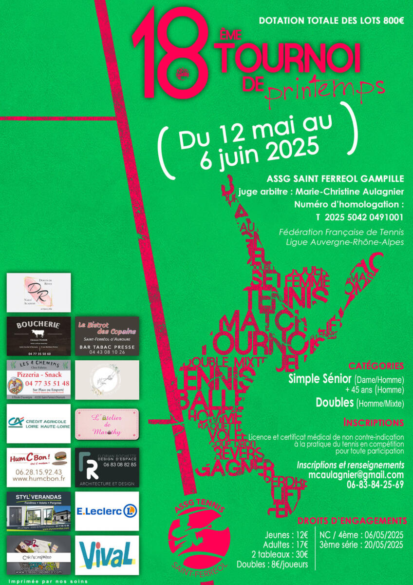 ASSG Tennis SAINT FERRÉOL : 18ème Tournoi de printemps