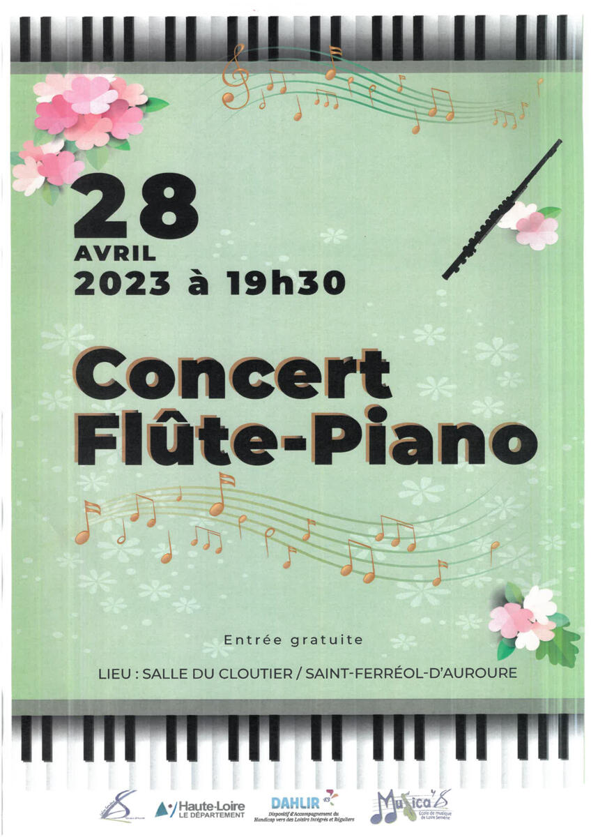 Vendredi 28 avril à 19h30 à la salle du cloutier : Concert Flûte-Piano 🎹🎵