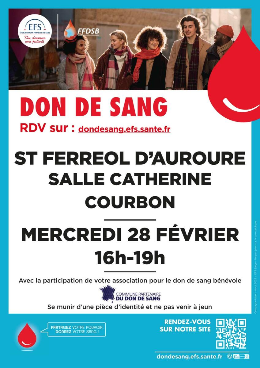 🩸 Prochaine collecte de sang le 28 février de 16h à 19h