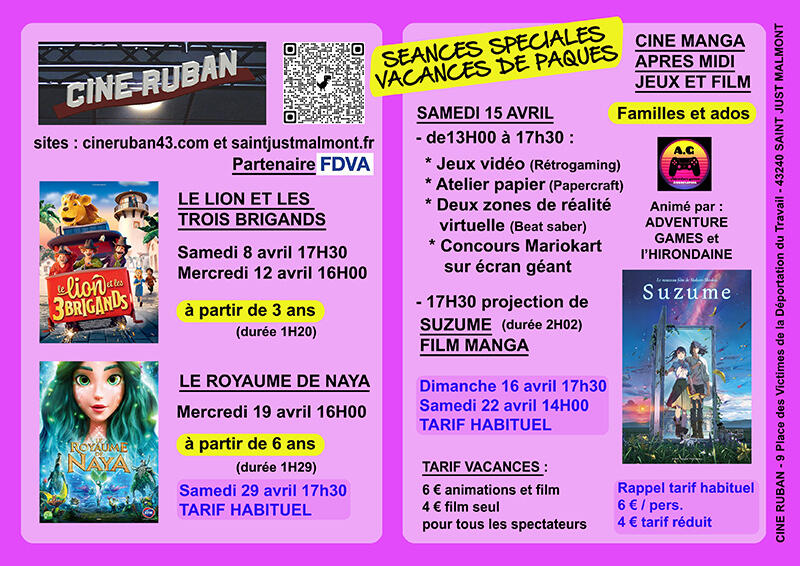 L’équipe de Ciné Ruban propose des séances à destination des plus jeunes pour les vacances de Pâques :