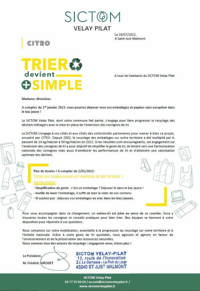 Su ayuntamiento / Noticias / Sictom Velay-Pilat - Nouvelles consignes de tri