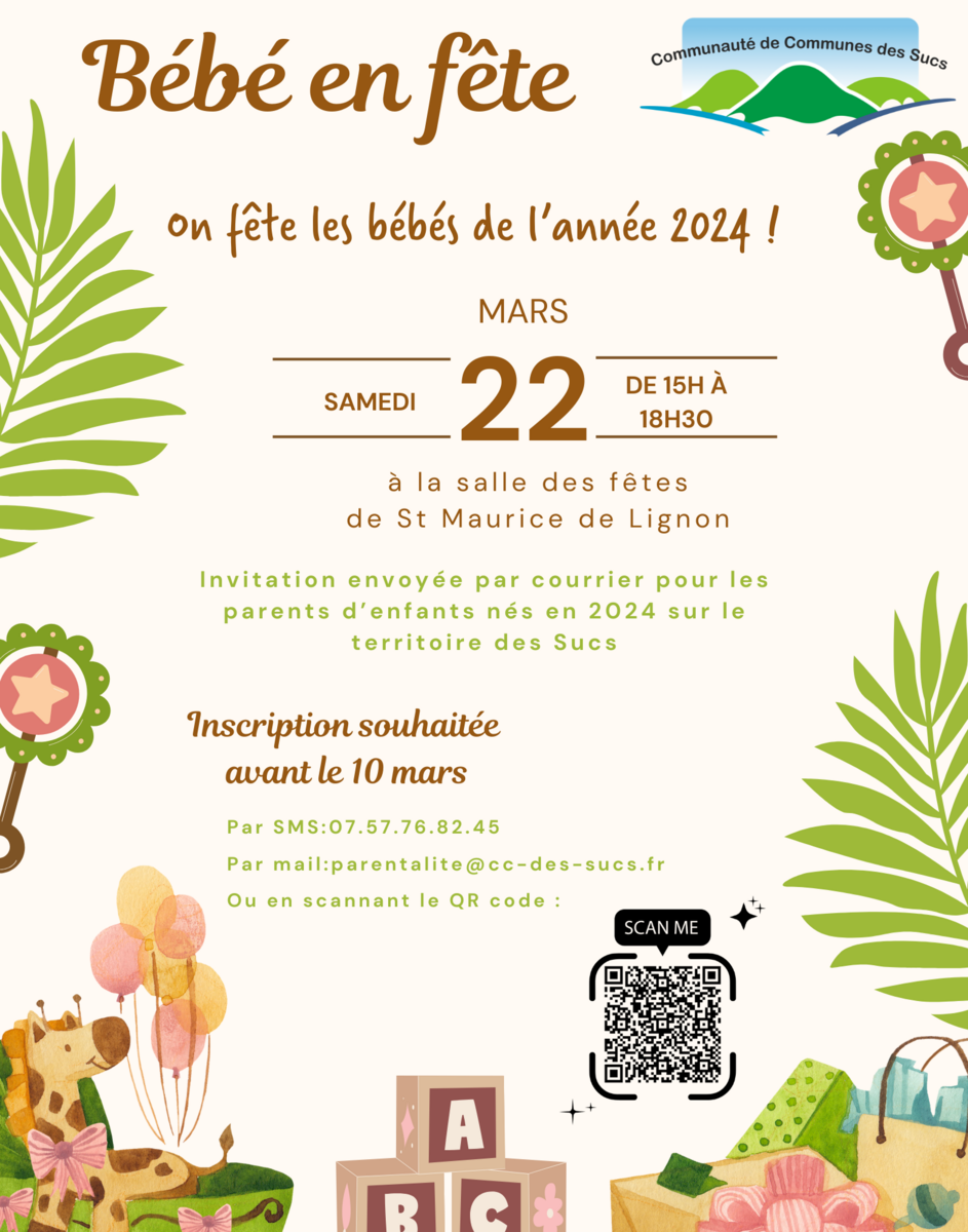 Pour les parents habitants sur la Communauté de Communes des Sucs ayant eu un enfant en 2024, pensez à vous inscrire via le lien: