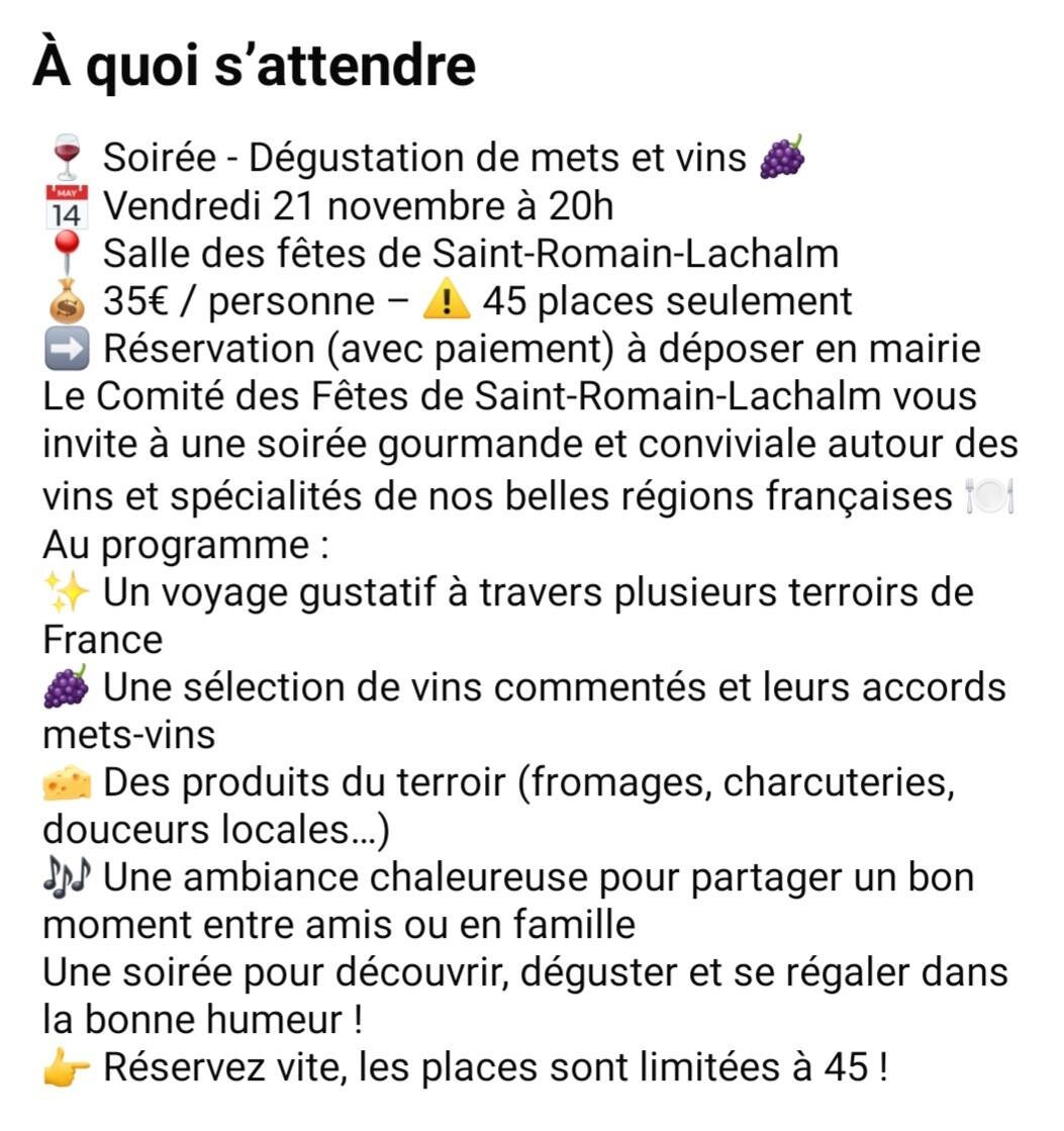 Su ayuntamiento / Noticias / SOIRÉE DÉGUSTATION DE METS ET VINS